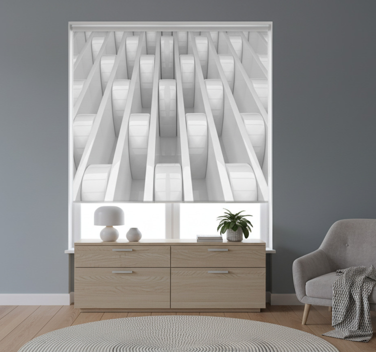 Estore de rolo branco design de formas geométricas 3d