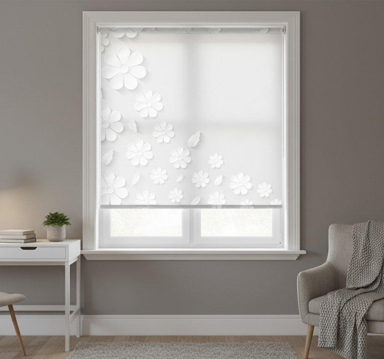 O estore de rolo branco é ideal para quem deseja renovar a decoração de forma simples e sofisticada. Ao adotar o estore de rolo branco fundo de flores de papel branco, proporcionas um toque de natureza e frescor ao ambiente, tornando-o mais convidativo. Este estore não só embeleza o espaço, mas também oferece uma privacidade necessária e ajuda a regular a luz, criando uma atmosfera perfeita para relaxar ou receber amigos. É a adição perfeita para qualquer divisão da casa!