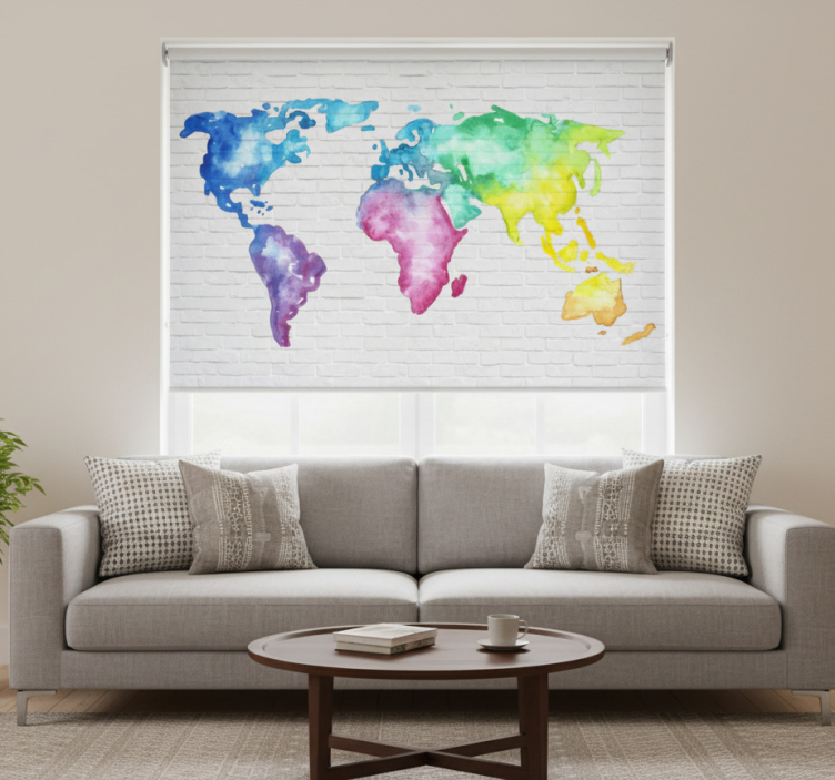 Referência: E8476Descobre o encanto do estore de rolo branco mapa-múndi colorido na parede, um elemento de design gráfico que transforma qualquer espaço! Com um padrão vibrante e educativo, este estore é mais do que uma simples cortina; é uma verdadeira obra de arte que traz vida e cor ao teu ambiente. Fácil de montar e de limpar, ele proporciona um toque de elegância e modernidade, ao mesmo tempo que cumpre funções práticas como proteger a sala da luz solar direta e oferecer privacidade quando necessário.