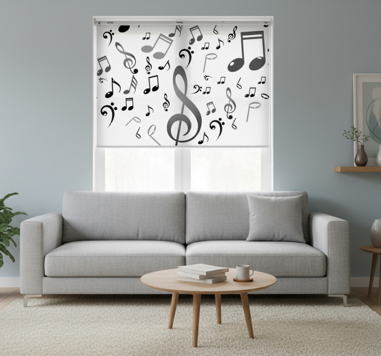 Estore de rolo branco notas musicais