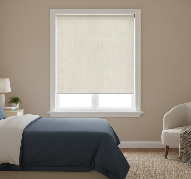 Estore de rolo cinzento com textura de linho neutro