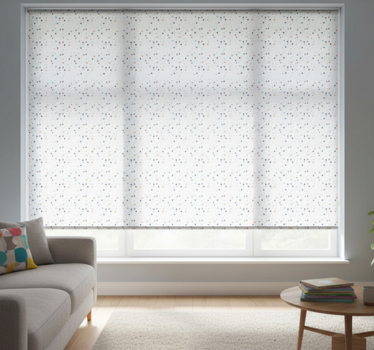 Estore de rolo cinzento estilo nórdico com pontos coloridos