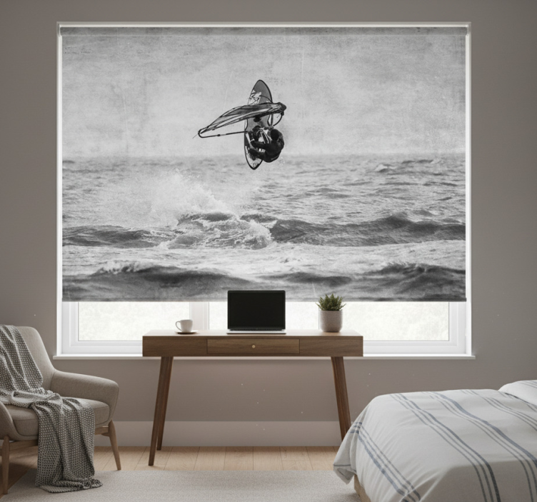 O estore de rolo cinzento é uma peça que não só embeleza o espaço, mas também proporciona um ambiente acolhedor. O design inspirador do estore de rolo cinzento windsurf preto e branco permite que a luz entre de maneira suave, criando uma atmosfera relaxante. É perfeito para quem deseja unir estética e funcionalidade, garantindo privacidade e proteção contra a luz solar direta. Transforme a decoração do teu lar com esta peça única!