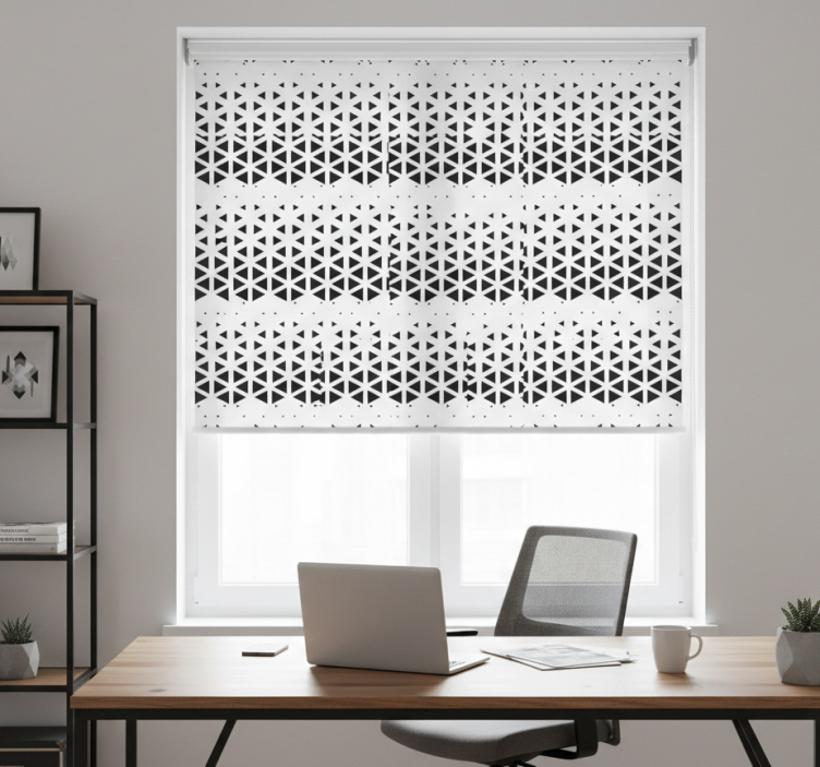 Referência: E7256Transforma o teu espaço com o estore de rolo empresa efeito ombré geométrico, um design gráfico que combina estilo e funcionalidade! Com características como fácil montagem em 2 cliques, fácil limpeza e a possibilidade de regular a temperatura ambiente, este estore é a escolha perfeita para quem valoriza um ambiente contemporâneo e acolhedor. Além disso, o seu efeito ombré geométrico traz um toque moderno e elegante à decoração, criando uma atmosfera única em qualquer divisão da casa.