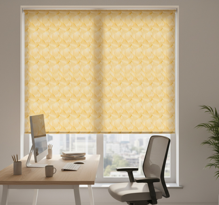 Referência: E7304O estore de rolo empresa ilusão de onda em ouro é uma peça de decoração que combina elegância e modernidade com um design gráfico encantador. Com um padrão de ondas que evoca movimento e fluidez, esta persiana não só embeleza o ambiente, mas também proporciona um toque de sofisticação. A sua fácil montagem em apenas 2 cliques e a possibilidade de limpeza rápida tornam este produto uma escolha prática para qualquer espaço!