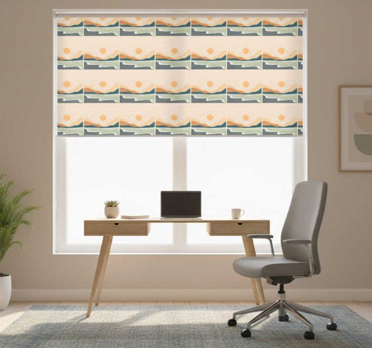 Referência: E7352Descobre o estore de rolo empresa montanhas do pôr do sol abstrato, uma peça única que transforma qualquer ambiente com o seu design gráfico vibrante e contemporâneo. Este estore não só é fácil de montar em 2 cliques, mas também proporciona uma limpeza rápida e prática, permitindo que desfrutes de um espaço sempre impecável. Com a sua capacidade de proteger a sala da luz solar direta e garantir privacidade, ele se torna um aliado perfeito na decoração do teu lar!
