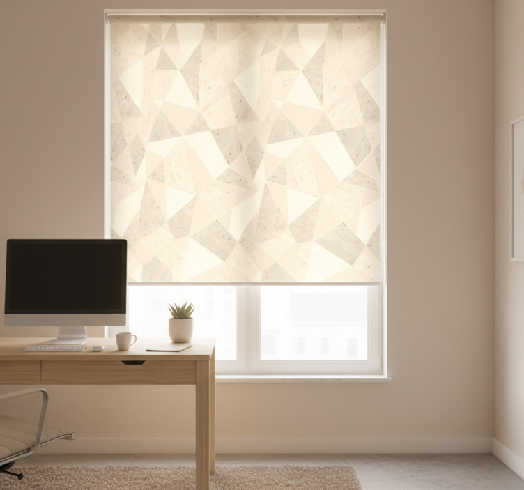 Referência: E7317O estore de rolo empresa triângulos dourados 3d é uma peça de design gráfico que transforma qualquer espaço! Com um padrão moderno de triângulos dourados em 3D, este estore traz um toque de sofisticação e estilo ao teu ambiente. É fácil de montar, limpar e desmontar, permitindo que desfrutes de um espaço sempre impecável. Além disso, oferece privacidade quando abaixado e ajuda a regular a temperatura ambiente, garantindo conforto e segurança.