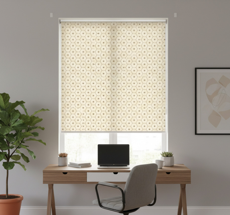 Instalar o estore de rolo escritório estore de rolo escritório padrão hexagonal abstrato é simples e rápido! Basta realizar a montagem em 2 cliques e desfrutar de todos os benefícios que ele oferece. Não te esqueças de deixá-lo um pouco mais largo que a janela para uma cobertura ideal e para garantir o máximo de privacidade e proteção da luz solar direta!
