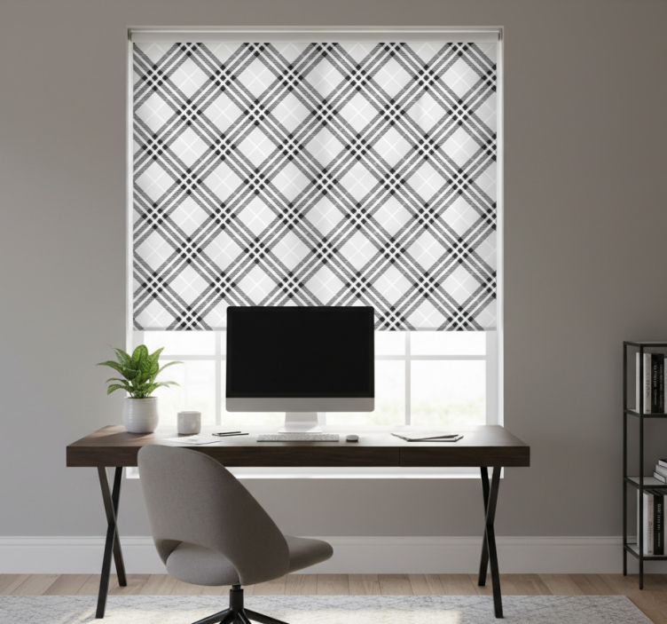O estore de rolo escritório tartan escocês preto e branco é a escolha perfeita para quem deseja adicionar um toque de classe à decoração. Este estore não só valoriza o ambiente, mas também proporciona uma sensação de acolhimento e harmonia. A sua estética gráfica e moderna permite que se integre facilmente em diversos estilos de decoração, tornando-o um elemento indispensável para qualquer escritório que aspire a um design contemporâneo e funcional!