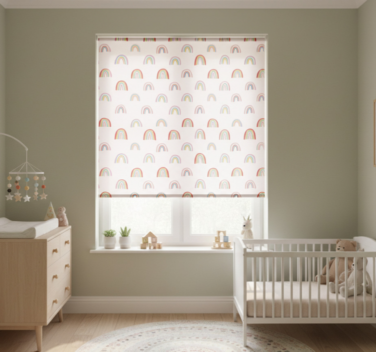 Estore de rolo infantil com padrões coloridos de arco-íris