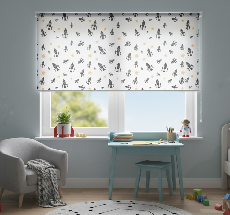 O estore de rolo infantil foguetes negros é a escolha perfeita para dar vida ao quarto dos pequenos! A sua estética divertida e colorida faz com que se torne um elemento central na decoração, criando um ambiente alegre e inspirador. Ao usar este estore, transformas o espaço numa verdadeira nave espacial, estimulando a criatividade e o sonho das crianças. É ideal para quem deseja um toque único e encantador na decoração.