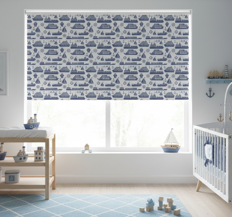 Estore de rolo infantil padrão de barco azul diferente