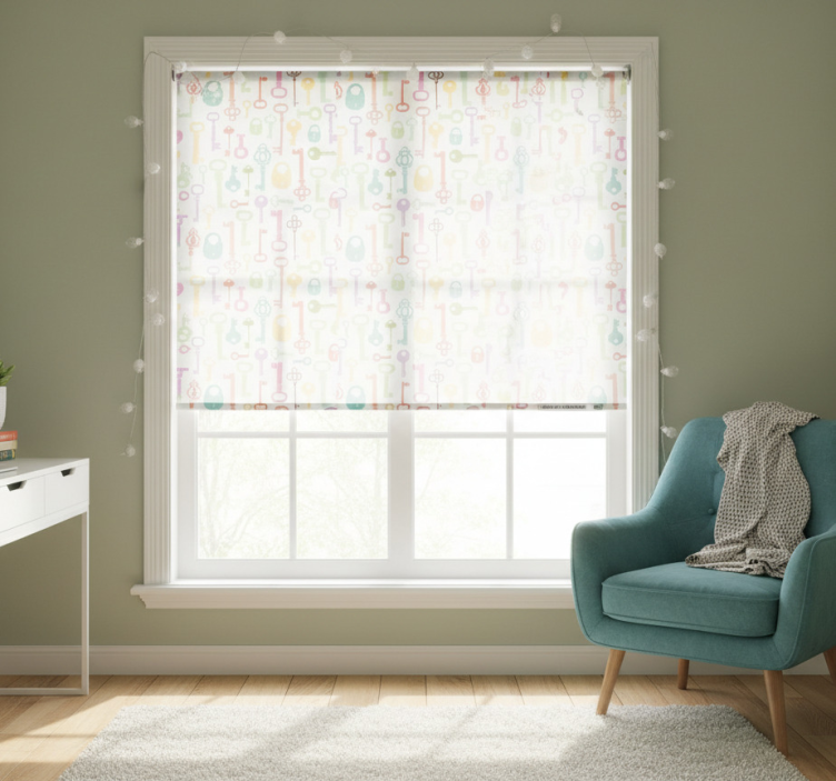 Aplicar o estore de rolo juvenil com padrão chave é simples e prático. Basta seguir as instruções e em poucos cliques, terás uma nova persiana que transforma a decoração do teu espaço. É uma solução que traz estilo e funcionalidade num só produto!
