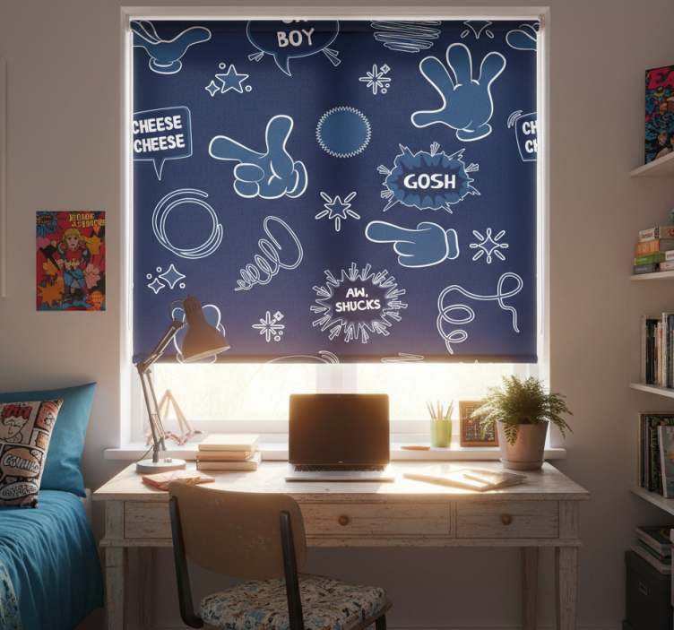 Referência: E7412Descobre o estore de rolo juvenil estilo quadrinhos, uma peça de decoração que combina funcionalidade e um design gráfico vibrante! Com ilustrações inspiradas em quadrinhos, este estore não só acrescenta um toque divertido ao ambiente, mas também é fácil de montar e limpar. A sua versatilidade permite que protejas a sala da luz solar direta, garantindo privacidade quando necessário e ajudando a regular a temperatura ambiente.