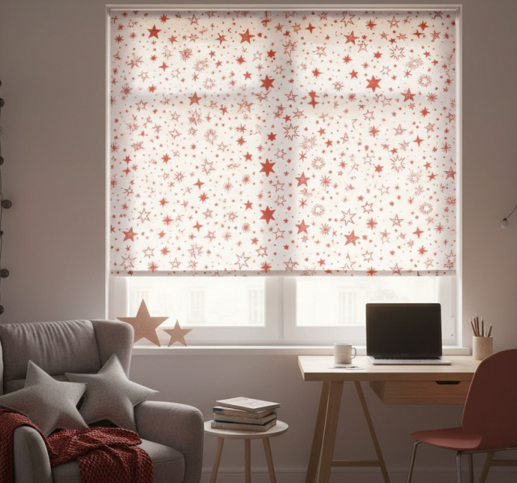Referência: E7478O estore de rolo juvenil estrela vermelha aquarela é uma peça decorativa que combina estilo e funcionalidade. Com um design gráfico vibrante, as estrelas vermelhas em aquarela criam uma atmosfera alegre e envolvente, perfeita para quartos de jovens que desejam expressar a sua personalidade. Este estore não só embeleza o espaço, mas também proporciona conforto e privacidade, adaptando-se facilmente ao ambiente.