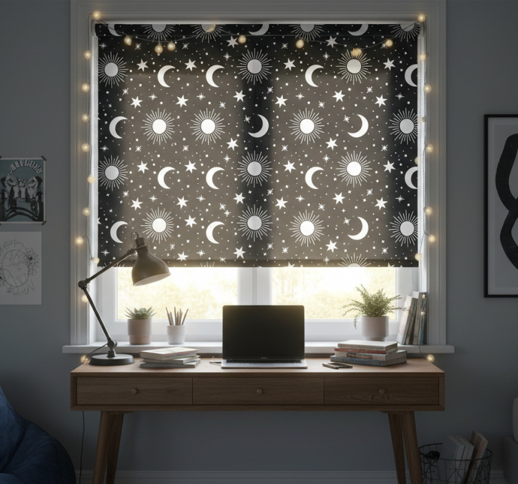 Estore de rolo juvenil estrelas e luas brancas