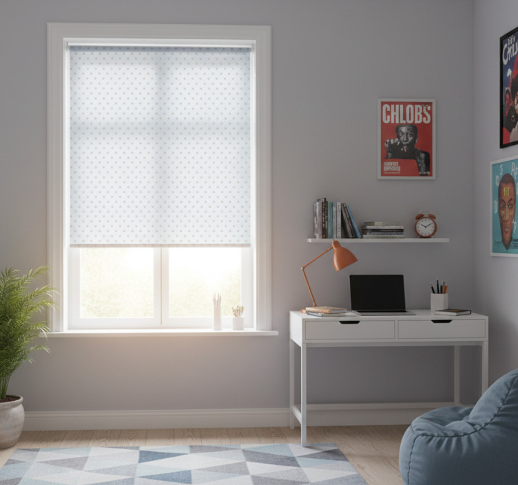 Referência: E7464Transforma o teu espaço com o estore de rolo juvenil fundo azul com estrelas cinzas, que combina um design gráfico encantador com a funcionalidade ideal para qualquer quarto! Este estore apresenta um fundo azul sereno adornado com estrelas cinzas, trazendo um toque de magia e criatividade ao ambiente. Além de ser visualmente apelativo, o design é prático, permitindo que a luz entre de forma controlada, criando uma atmosfera acolhedora e inspiradora.