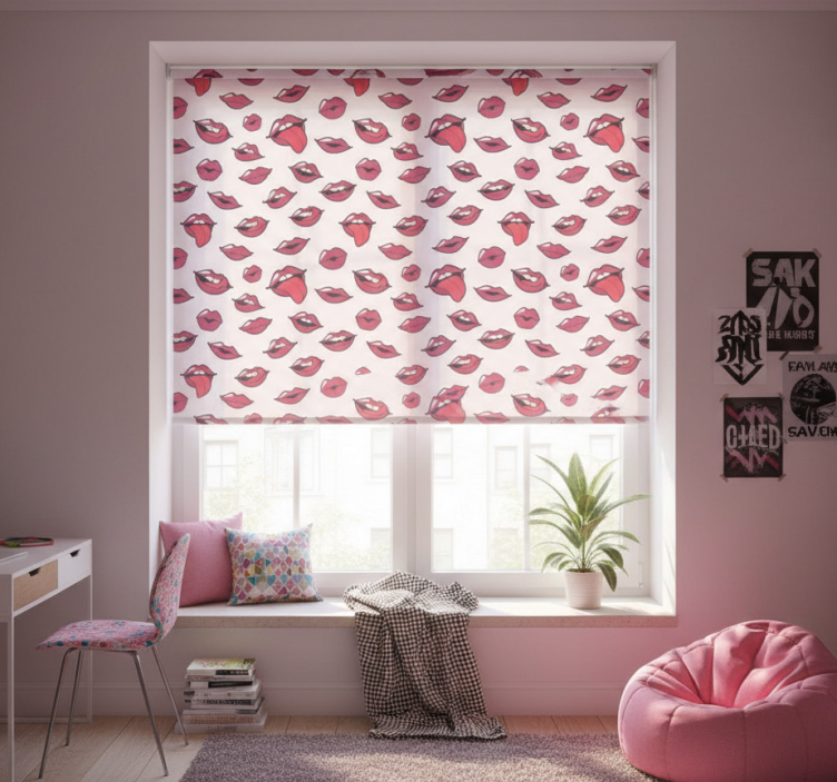 Referência: E7440O estore de rolo juvenil lábios e língua abstratos é uma peça única que combina arte e funcionalidade. Com um design gráfico vibrante e cativante, apresenta lábios e línguas em padrões abstratos que trazem uma energia jovem e divertida para qualquer espaço. Este produto é perfeito para quem deseja adicionar um toque artístico e moderno à decoração de quartos, transformando ambientes com estilo e originalidade!