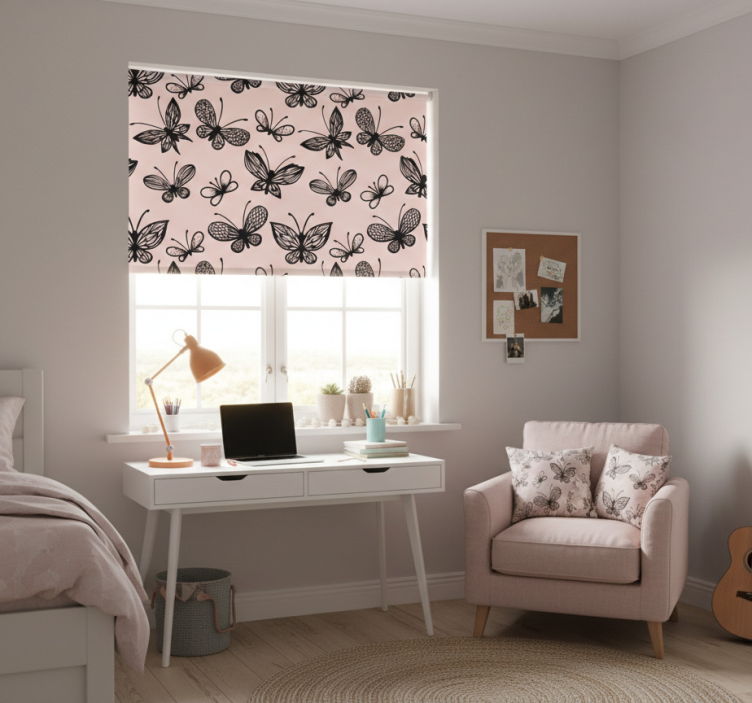 Estore de rolo juvenil padrão de borboletas pretas