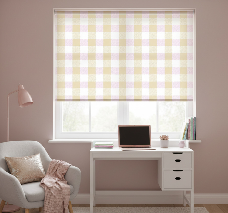 O estore de rolo juvenil xadrez rosa e dourado é uma escolha perfeita para decoração, pois transforma qualquer espaço com o seu design vibrante e contemporâneo. Ao utilizar este estore, consegues criar um ambiente acolhedor e estiloso, ideal para os jovens que desejam expressar a sua personalidade. Além de embelezar o quarto, oferece privacidade e controle da luz solar, tornando-se um elemento essencial na decoração do teu lar!