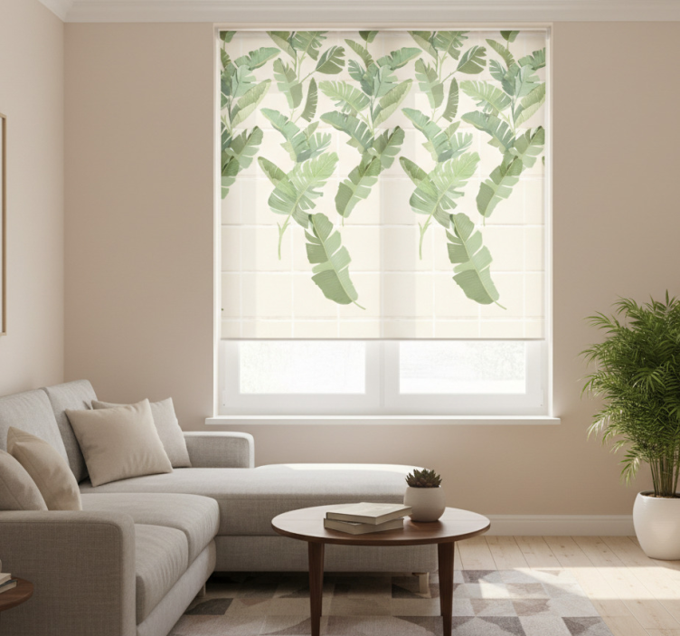 Estore de rolo modernos com azulejos e palmeiras