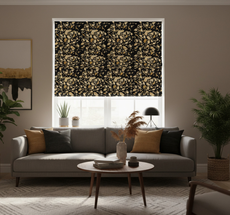 O estore de rolo modernos estilo terrazzo preto e ouro é a escolha perfeita para quem deseja valorizar a decoração do lar de forma inovadora! Com seu design arrojado, ele não só embeleza o espaço, mas também proporciona um ambiente acolhedor e cheio de estilo. A sua capacidade de regular a luz solar direta e oferecer privacidade quando abaixado transforma qualquer divisão numa verdadeira obra de arte, unindo estética e funcionalidade!