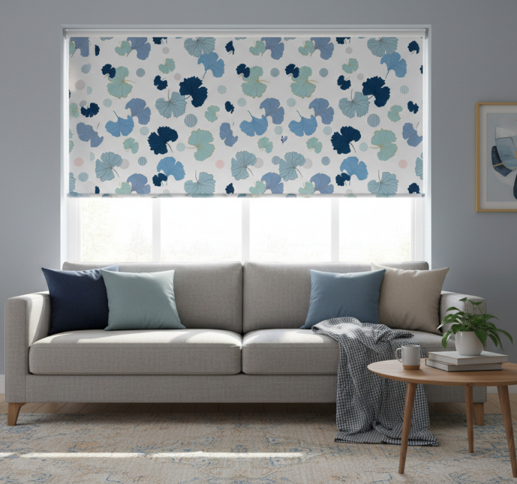 Referência: E7673Transforma o teu espaço com o estore de rolo modernos folha de ginkgo azul, que combina um design gráfico elegante e contemporâneo, apresentando folhas de ginkgo em tons de azul. Este padrão não só traz um toque de frescor e natureza ao ambiente, como também reflete a modernidade e a sofisticação que procuras para a tua decoração.