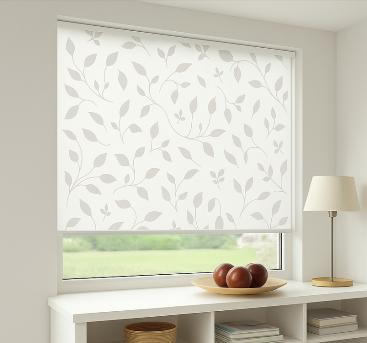Estore de rolo nórdico com estampa de folhas calmantes