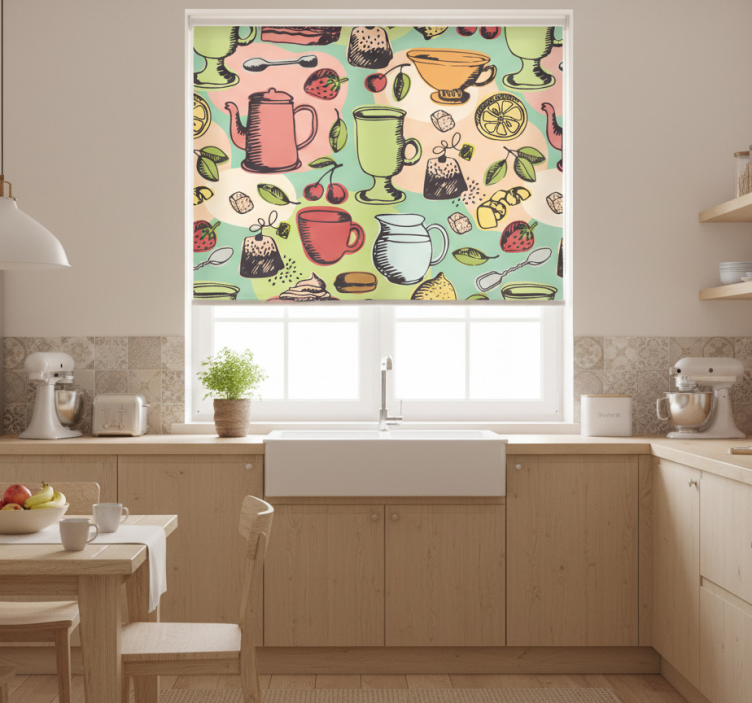 O estore de rolo para cozinha é a escolha perfeita para quem deseja transformar a sua cozinha num espaço acolhedor e estiloso. Com a sua capacidade de valorizar a decoração, este estore de rolo para cozinha alimentos na cozinha traz uma atmosfera única ao ambiente, proporcionando privacidade e regulando a entrada de luz solar. Deixe a tua criatividade fluir e adiciona um toque especial à tua cozinha!