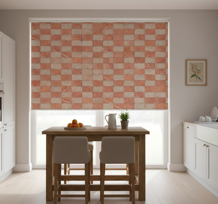 Estore de rolo para cozinha azulejos geométricos bege