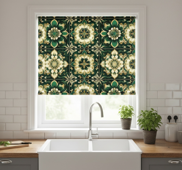 O estore de rolo para cozinha azulejos mosaico botânico é a solução perfeita para quem deseja dar um novo ar à sua cozinha. Com o seu design único, ele não só embeleza o espaço, mas também proporciona uma atmosfera aconchegante. A sua capacidade de regular a luz solar direta garante um ambiente confortável, enquanto a privacidade é mantida quando o estore está abaixado. Valoriza a decoração do espaço e transforma a cozinha num lugar mais convidativo e alegre!