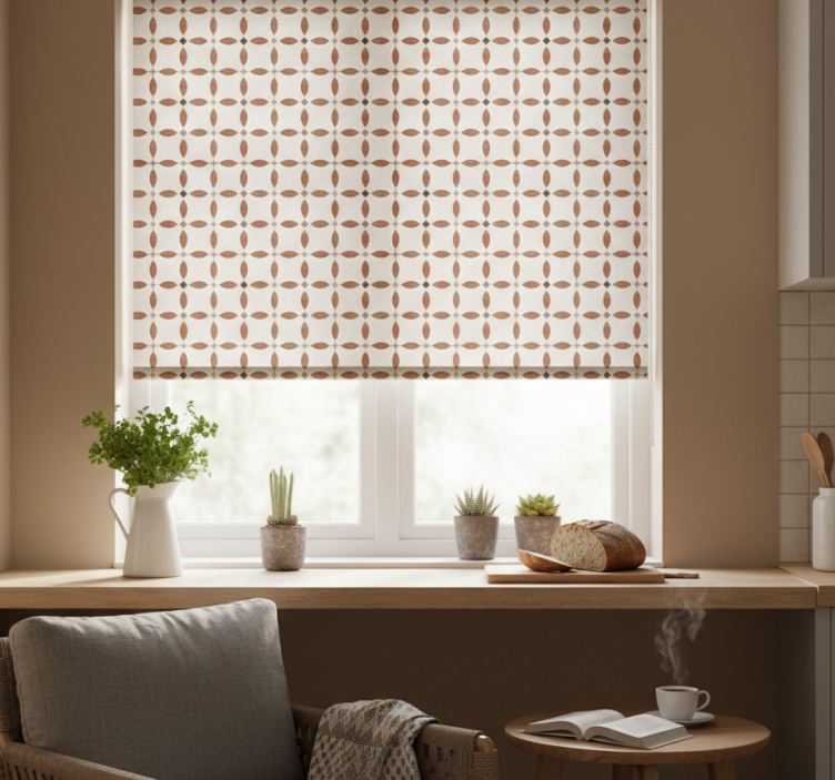 Estore de rolo para cozinha com motivo geométrico bege