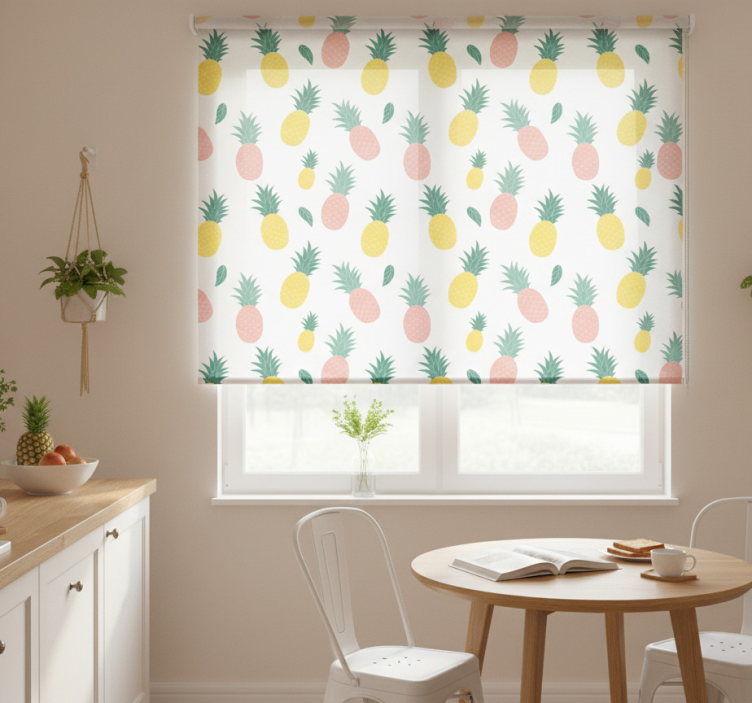 O estore de rolo para cozinha estampa abacaxi é ideal para dar vida e cor ao ambiente, tornando-o mais acolhedor e alegre. Ao usar este estore, crias uma atmosfera descontraída, perfeita para reunir amigos e familiares. A sua estampa única atrai olhares e transforma qualquer espaço simples em um local cheio de personalidade, tornando-se um elemento essencial na decoração da tua cozinha!