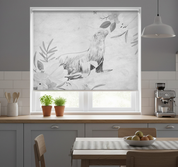 O estore de rolo para cozinha estore de rolo para cozinha foca cinza nadando e flores é uma excelente escolha para quem deseja dar vida à decoração. Ao incorporar este estore, a tua cozinha ganha um ar divertido e acolhedor, perfeito para momentos de partilha e convívio. Atraente e prático, ele não só embeleza o ambiente, mas também oferece privacidade e proteção contra a luz solar directa, tornando-se um elemento essencial na tua casa!