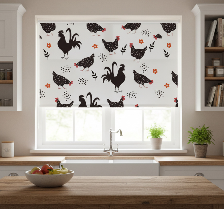 O estore de rolo para cozinha galo preto e branco deve ser uma escolha para quem deseja adicionar charme e personalidade ao ambiente. Este design gráfico vibrante não passa despercebido e tem o poder de criar um ponto focal na decoração da cozinha. Ele combina a funcionalidade com a estética, proporcionando um toque de originalidade que encantará a todos os que visitam a tua casa!