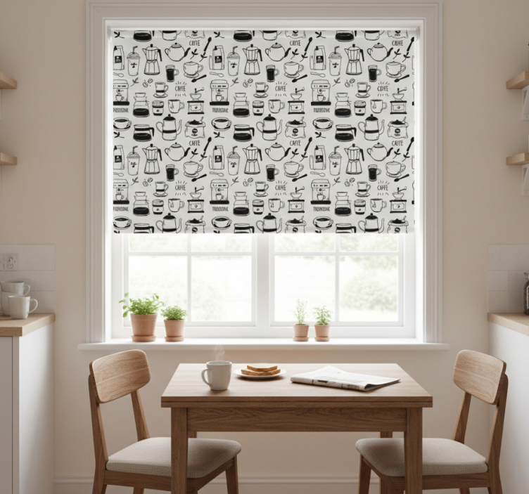 Estore de rolo para cozinha hora do café