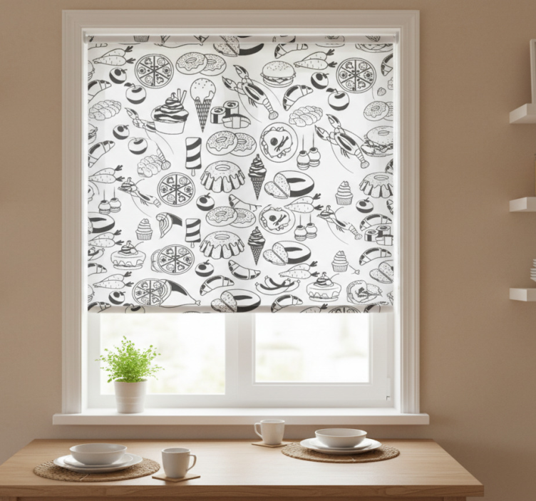 Optar pelo estore de rolo para cozinha estore de rolo para cozinha padrão de comida preto e branco é uma decisão que eleva a decoração do teu lar. Ele não apenas agrega valor estético, mas também ajuda a criar um ambiente harmonioso e convidativo. Imagine preparar as tuas refeições diárias enquanto uma peça tão estilosa complementa o espaço! É uma forma simples de transformar a cozinha em um lugar mais agradável e inspirador!