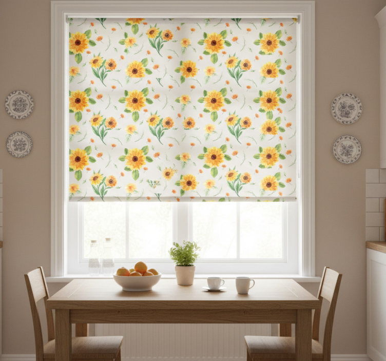 Estore de rolo para cozinha padrão floral aquarela girassol