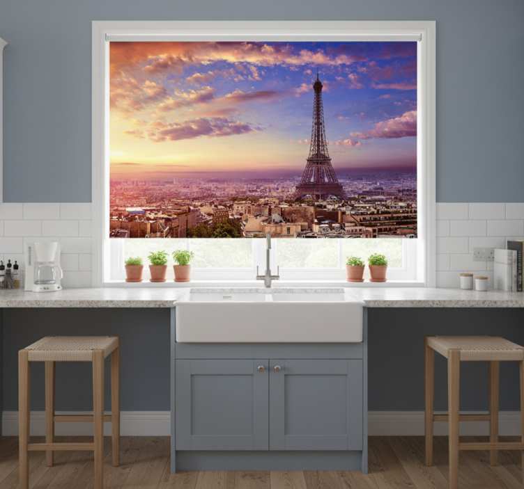 Estore de rolo para cozinha vista de paris