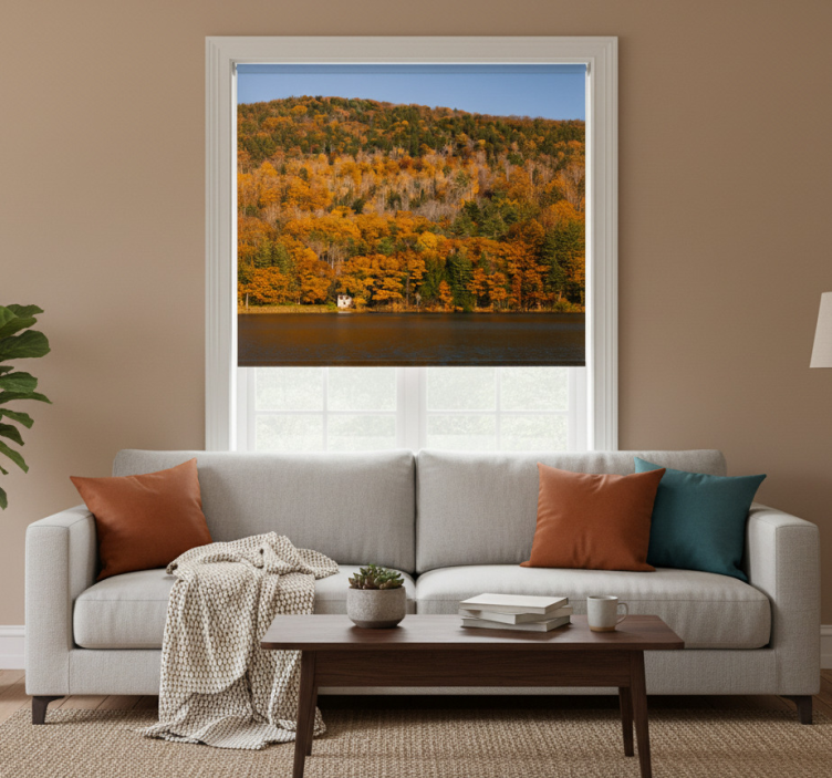 Estore de rolo para sala lago e árvores douradas