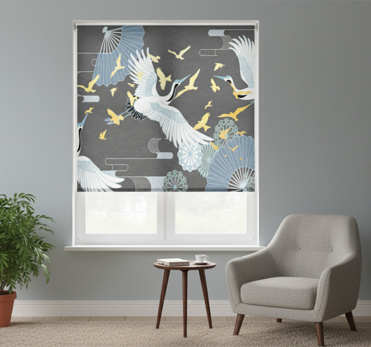 Estore de rolo para sala pássaro oriental