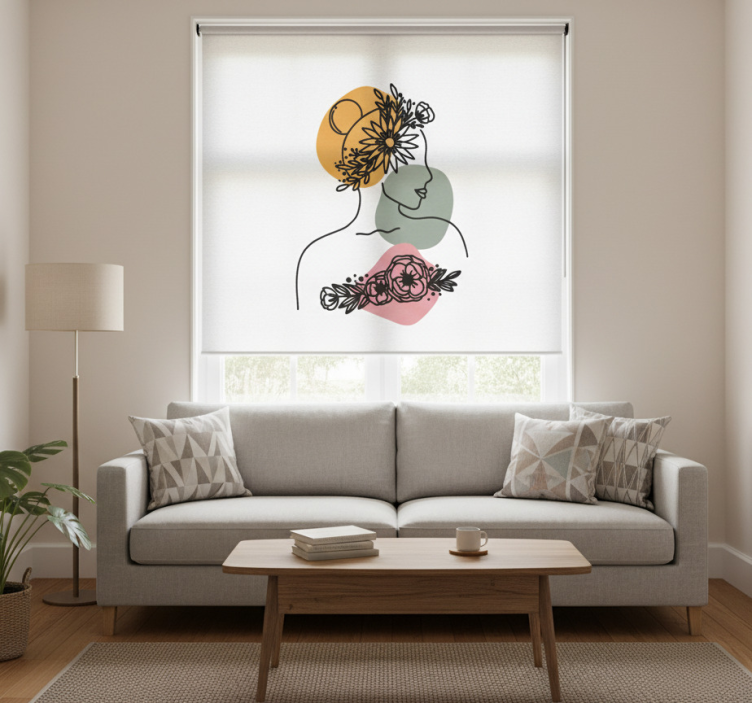 Estore de rolo para sala rosto de flor mulher