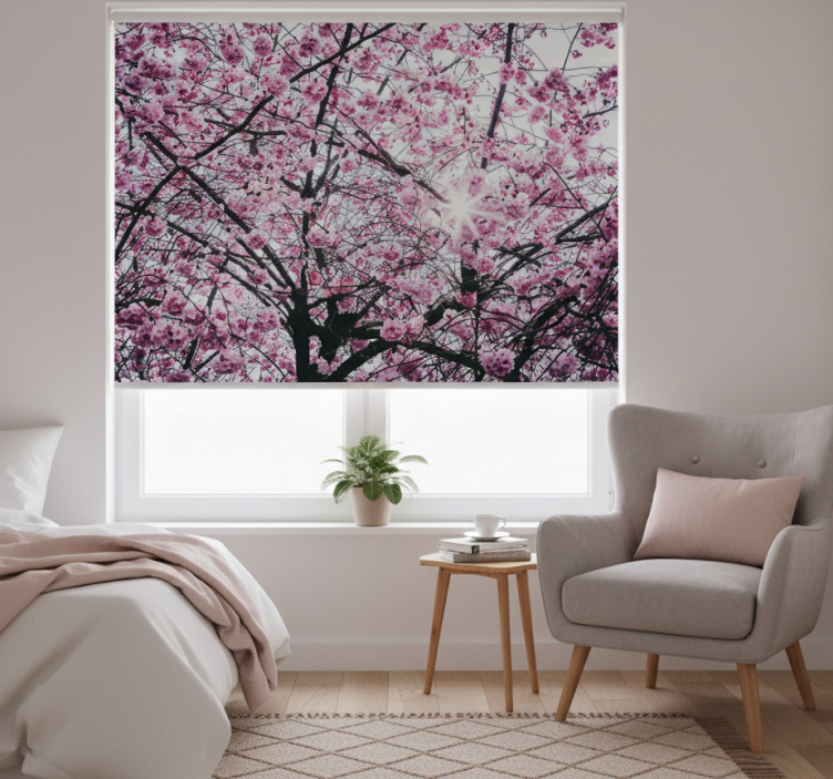 Estore de rolo rosa flor de cerejeira