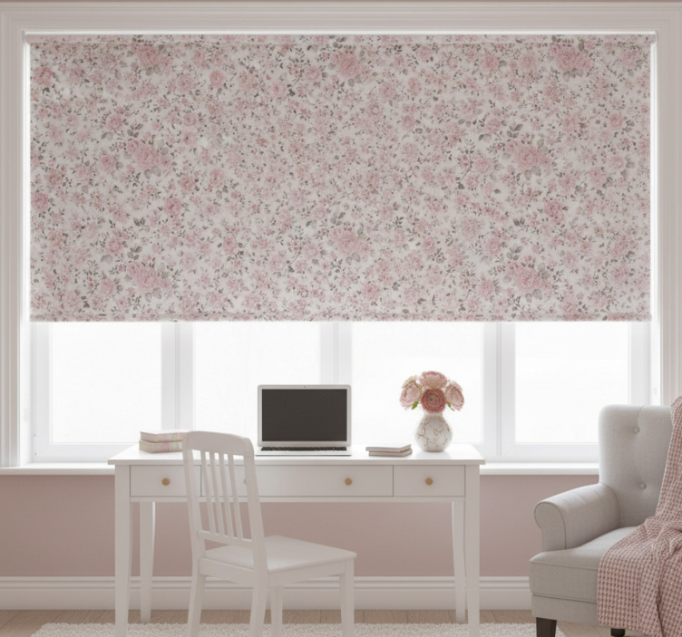 Estore de rolo rosa flores antigas retrô