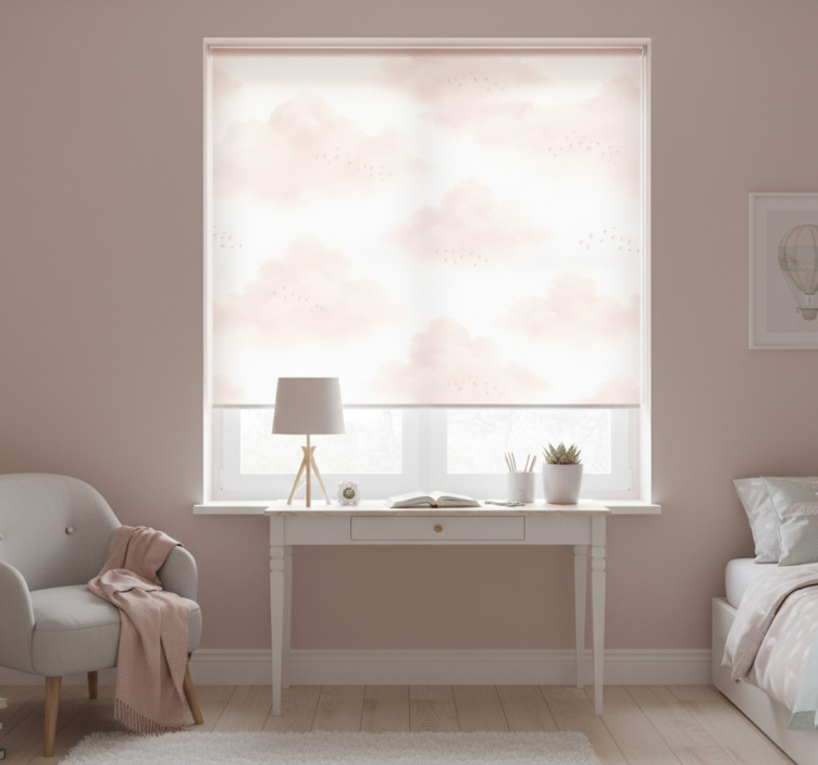 Estore de rolo rosa nuvens cor-de-rosa