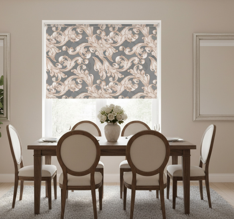 Estore de rolo sala de jantar cinza bonito