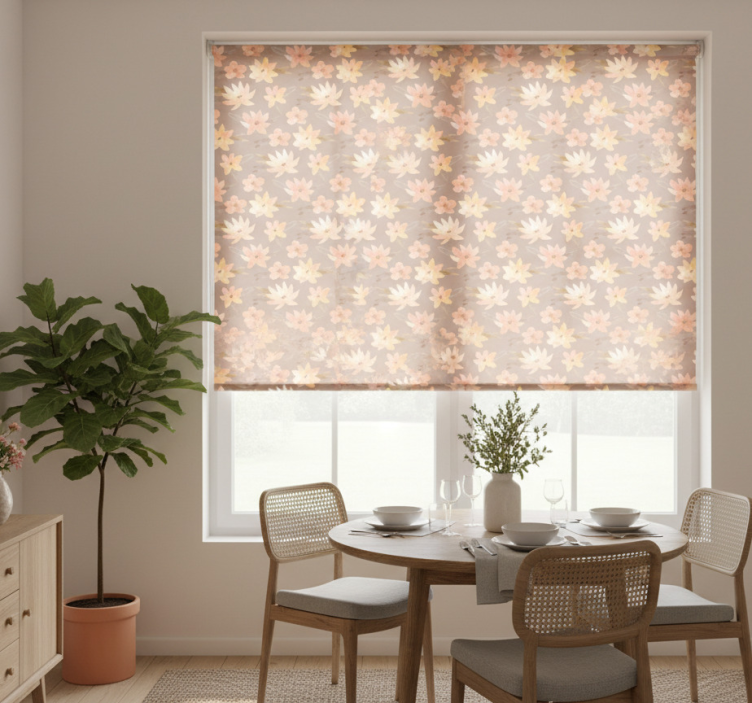 Estore de rolo sala de jantar flores aquarela pastel