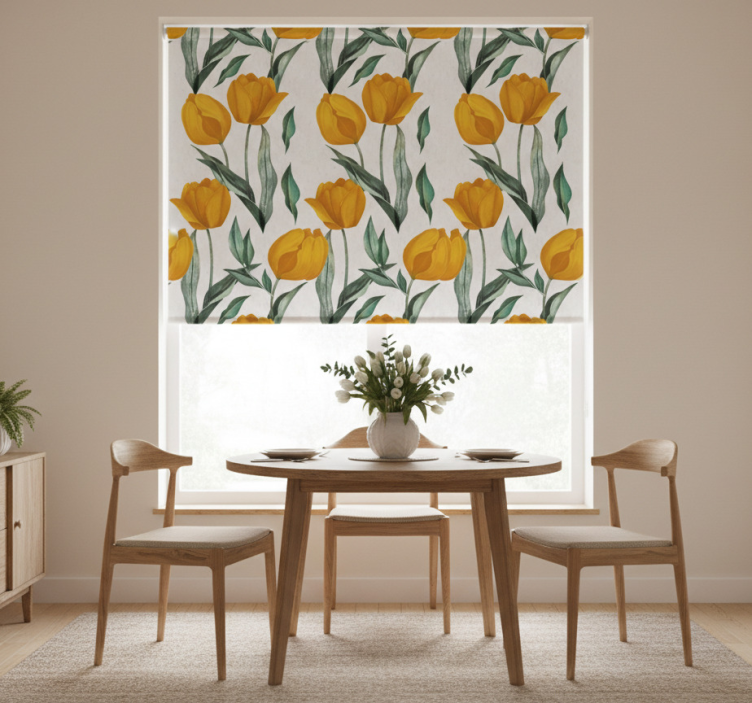 Estore de rolo sala de jantar padrão de girassóis