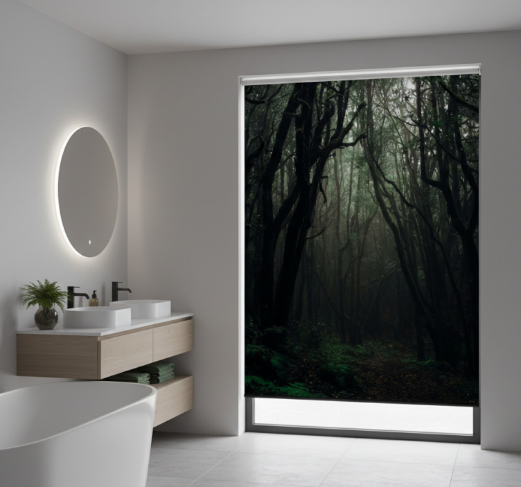 Estores de rolo de árvores florestas místicas escuras