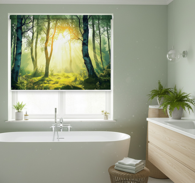Estores de rolo de árvores mural de bétula banho de sol